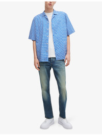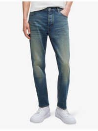 PRODUCT DETAILS - HUGO stretch-denim jeans - 99% cotton, 1% elastane - Concealed button fastening at front - Tapered fit, mid-rise, belt loops, five pockets, washed effect - Machine wash cold - Model is 6ft 2in/1.88m and wears a size UK 32 - Midweight, slight stretch Ref: R04252774