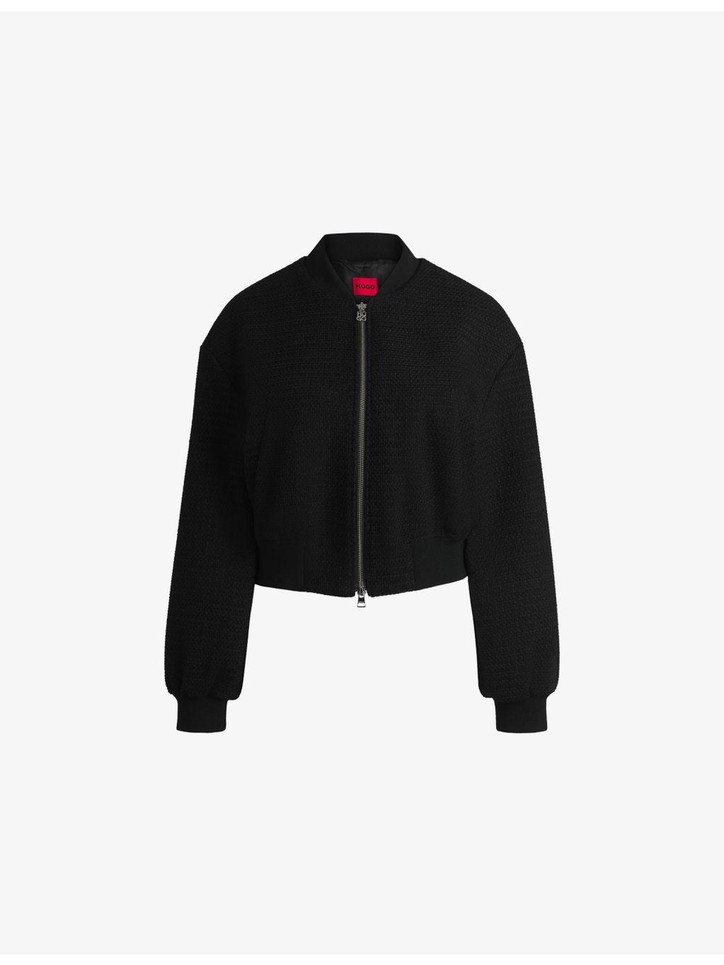 PRODUCT DETAILS - HUGO cotton-blend jacket - 67% cotton, 17% polyester, 16% acrylic - Exposed zip fastening at front - Relaxed fit, stand collar, long sleeves, all-over waffle texture, branded zip puller, two welt pockets at side, ribbed trim to collar, cuffs and hem - Dry clean - True to size - Midweight, non-stretch Ref: R04329795