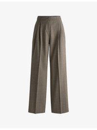 PRODUCT DETAILS - HUGO stretch wool-blend trousers - 54% polyester, 44% virgin wool, 2% elastane - Button, hook-and-eye and zip-fly fastening - Relaxed fit, high rise, two pockets at the side, wide leg, all-over check pattern - Dry clean - True to size - Model is 5ft 9in/1.75m and wears a size UK 8 - Midweight, non-stretch Ref: R04252880