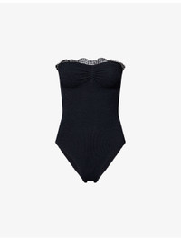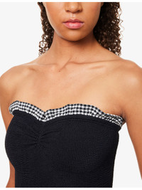 Dolly strapless ruffled gingham-trimmed seersucker swimsuit Black
