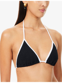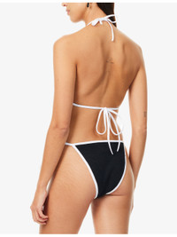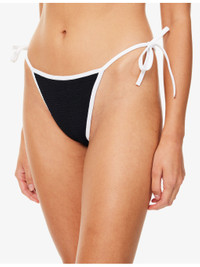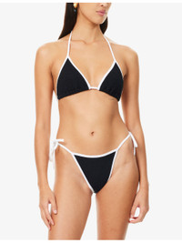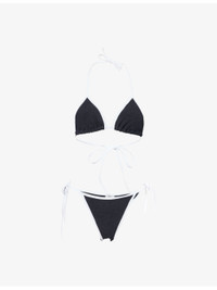 PRODUCT DETAILS - Hunza G bikini set - 97% polyamide, 3% elastane - Top: Triangle shape, self-tie straps, contrast trims, crinkle texture - Bottom: Mid-rise, elasticated waistband, self-tie straps at waist sides, crinkle texture, contrast trims, moderate rear coverage - Hand wash - Model is 5ft 10in / 1.78m and wears one size - Lightweight, stretchy - For hygiene reasons, we are unable to exchange or refund this product if the protective adhesive strip has been removed. Ref: R04445515
