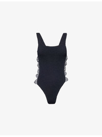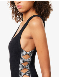 Tiffany cutout gingham-trimmed seersucker swimsuit Black