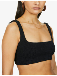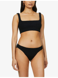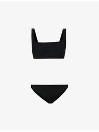 PRODUCT DETAILS - Hunza G bikini set - 88% nylon, 12% elastane - Slips on - Top: - Scoop neck, shoulder straps, all-over plisse texture, tonal stitching - Bottoms: - High-rise, all-over plisse texture, tonal stitching, mid-coverage at back, high leg - Hand wash - True to size - Model is 5ft 9in/1.75m and wears a size small - Midweight, stretchy Ref: R03756655-S