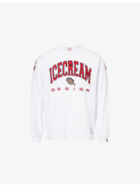PRODUCT DETAILS - ICECREAM cotton-jersey T-shirt - 100% cotton - Regular fit, crew neck, long sleeves, embroidered tab at sleeve hem, graphic print and embroidery at front, logo print at back - Machine wash cold - Model is 6ft 2in/1.88m and wears a size medium - Lightweight, slight stretch Ref: R04549386