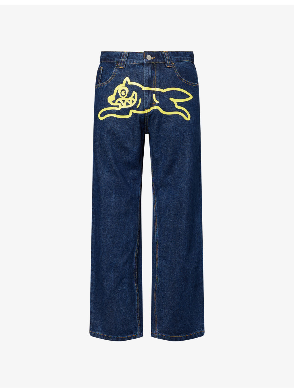PRODUCT DETAILS - ICECREAM denim jeans - 100% cotton - Button and zip-fly fastening - Regular fit, high-rise, straight leg, belt loops, five pockets, dog print and icecream embroidery at front, brand patch at back - Machine wash at 30°C - Size UK 30: rise 13in / 34cm, inside leg 29in / 75cm, leg opening 18in / 46cm - Model is 6ft 2in/1.88m and wears a size UK 30 - Midweight, non-stretch Ref: R04507665