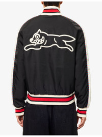 PRODUCT DETAILS - ICECREAM woven jacket - 100% polyester; filling 100% polyester; lining 100% polyester - Exposed zip fastening at front - Regular fit, crewneck, contrast panel and striped piping at raglan long sleeves, brand embroidery and two jetted pockets at front, dog embroidery at back, all-over satin texture, all-over padded, fully lined, ribbed striped trims - Hand wash cold - Size medium: length 26in / 66cm, chest 42in / 107cm - Model is 6ft 2in/1.88m and wears a size medium - Lightweight, non-stretch Ref: R04549379