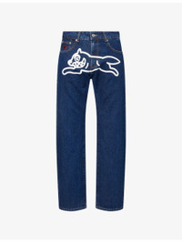 PRODUCT DETAILS - ICECREAM denim jeans - 100% cotton - Button and zip-fly fastening - Straight leg, five pockets, graphic print at front, letter patches on back pockets, medium wash - Machine wash cold - Size UK 30: rise 12in / 30cm, inside leg 31.5in / 80cm, leg opening 17in / 43cm - Model is 6ft 2in/1.88m and wears a size UK 30 - Midweight, non-stretch Ref: R04459894