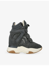 PRODUCT DETAILS - Isabel Marant suede trainers - 100% suede - Hook-and-loop tape fastening - Closed round toe, high-top silhouette, panelled upper, padded tongue, perforated front, logo patch at tongue, chunky sole, wedge heel - Heel height 1.6"" - Specialist leather clean - Upper: 100% suede - Lining: 100% leather - Sole: 100% rubber Ref: R04517190