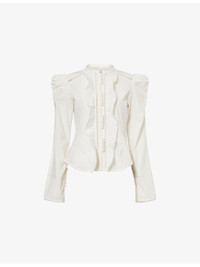 PRODUCT DETAILS - Isabel Marant cotton shirt - 100% cotton - Button fastening - Fitted, round neck, long sleeves, buttoned cuffs, pleated puff shoulders, mesh inserts, crochet trims, concelaed zip fastening at side seam - Machine wash at 30°C - Made in India - True to size - Model is 5ft 10in/1.78m and wears a size UK 8 - Lightweight, non-stretch Ref: R04519899