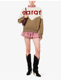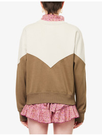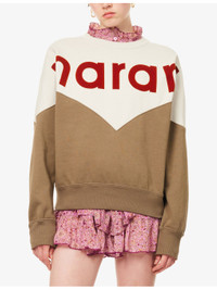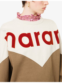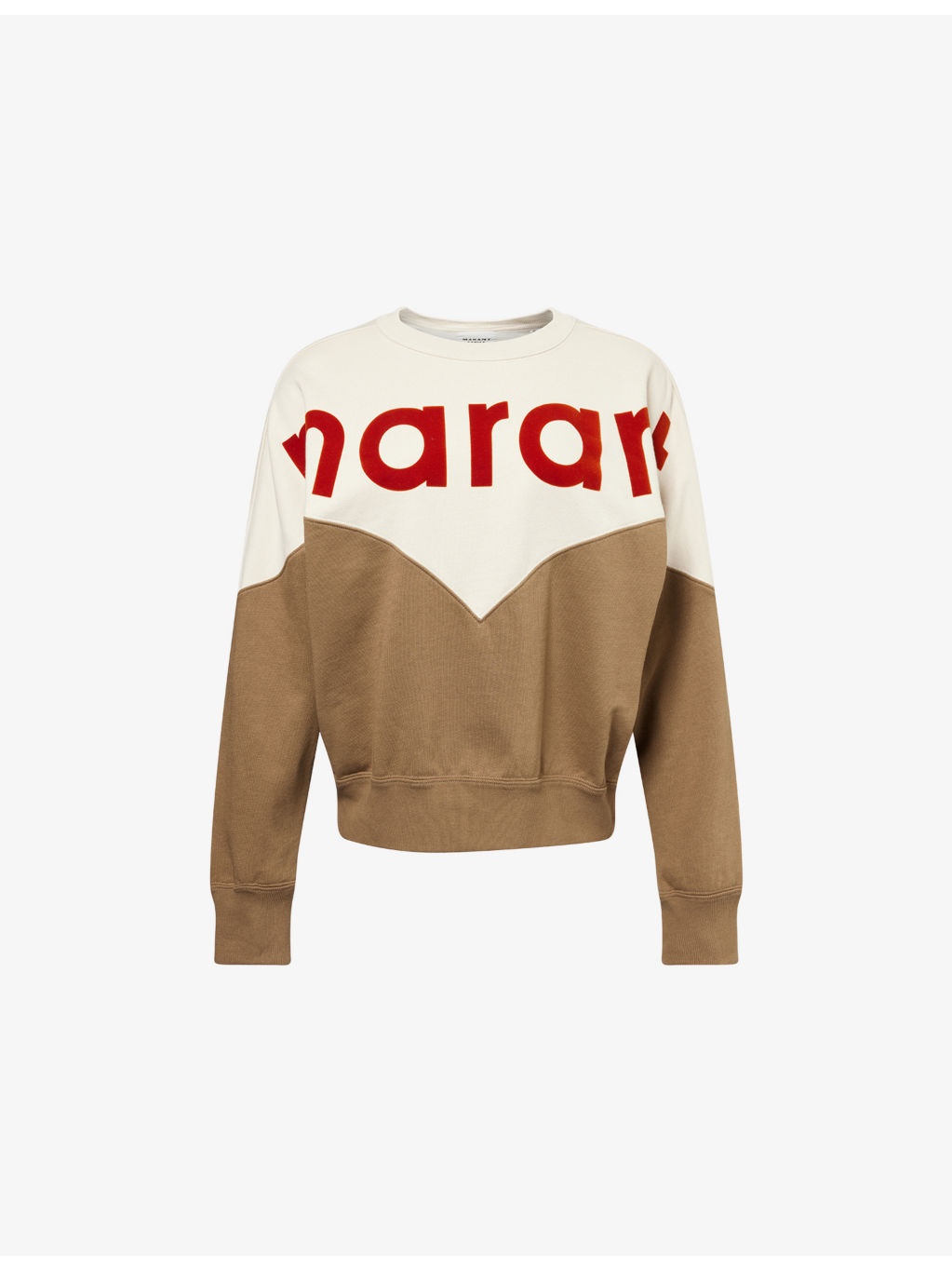 PRODUCT DETAILS - Isabel Marant Etoile cotton-blend sweatshirt - 88% cotton, 12% polyester; embroidery 100% polyamide; trims 100% cotton - Relaxed fit, round neck, dropped shoulders, long sleeves, ribbed trims, flocked logo at front, colour-block design - Machine wash at 30°C - Made in Portugal - True to size - Model is 5ft 10in/1.78m and wears a size UK 8 - Midweight, non-stretch Ref: R04473601