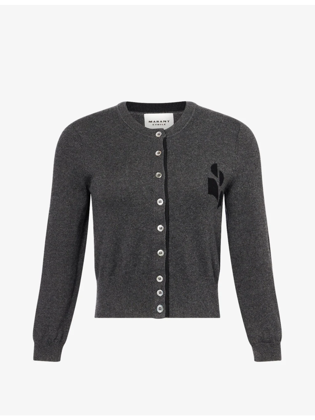 PRODUCT DETAILS - Isabel Marant Etoile cotton and wool cardigan - 70% cotton, 30% wool; trims 64% cotton, 28% wool, 8% polyester - Exposed button fastening at front - Regular fit, cropped, round-neck, long sleeves, monogram intarsia at front, all-over knitted, ribbed trims - Hand wash cold - True to size - Size UK 8: length 18in / 46cm - Model is 5ft 10in/1.78m and wears a size UK 8 - Midweight, stretchy Ref: R04565357