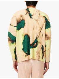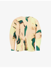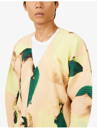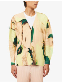 PRODUCT DETAILS - Homme Plisse Issey Miyake woven cardigan - 100% polyester - Snap fastening at front - Regular fit, V-neck, dropped shoulders, long sleeves, side slip pockets, all-over graphic pattern, engineered pleating - Machine wash at 30°C - Size 3: length 28.5in / 73cm, chest 54in / 138cm - Model is 6ft/1.83m and wears a size 3 - Lightweight, slight stretch - This garment’s sizing is based on height and doesn’t conform to standard sizes. Please refer to the size guide for your desired length Ref: R04500185