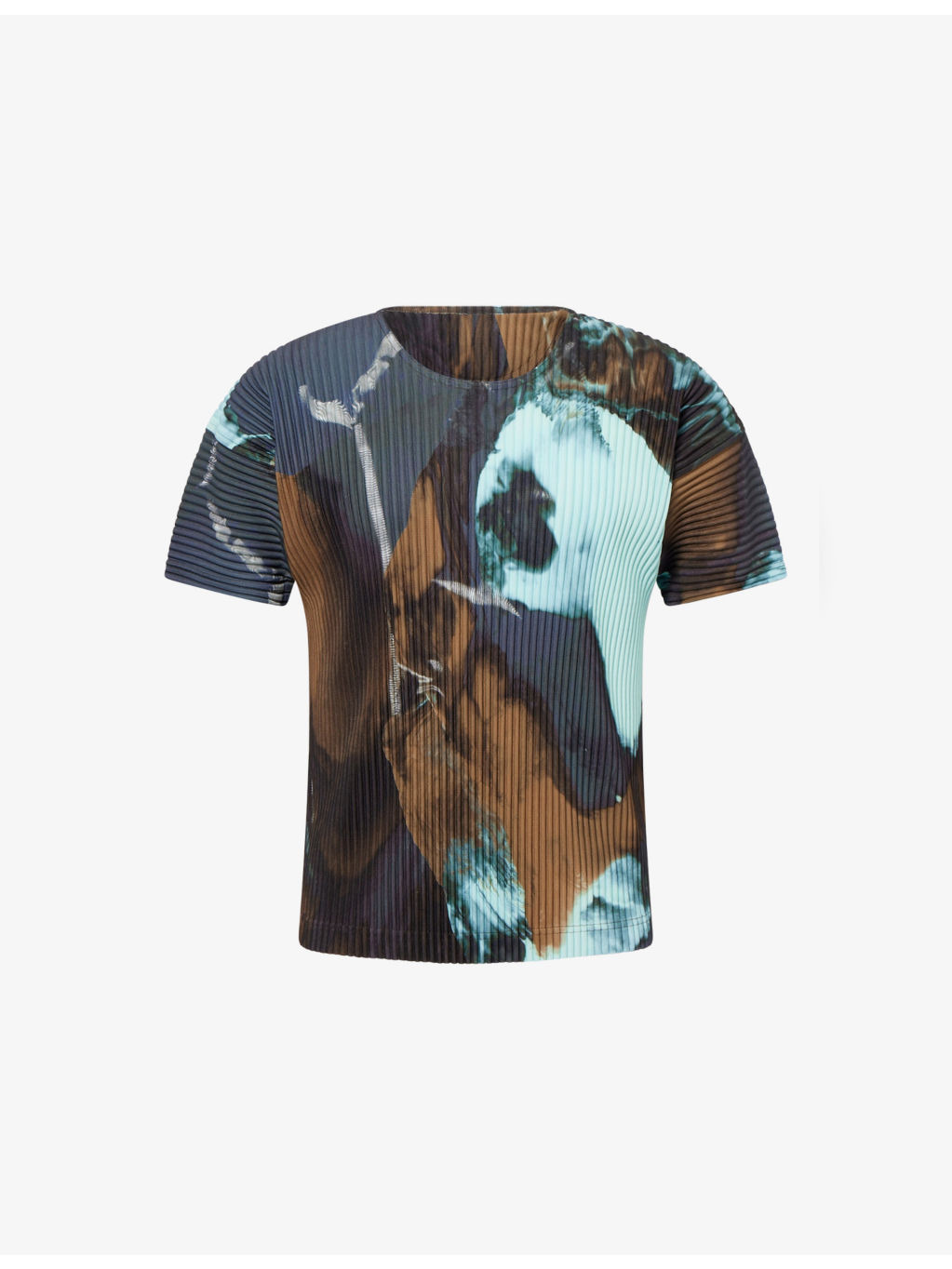 PRODUCT DETAILS - Homme Plisse Issey Miyake knitted t-shirt - 100% polyester - Round neck, short sleeve, all-over pleated texture, all-over graphic print design - Machine wash at 30°C - Model is 6ft 2in/1.88m and wears a size 3 - Lightweight, slight stretch - This garment’s sizing is based on height and doesn’t conform to standard sizes. Please refer to the size guide for your desired length. Ref: R04500181