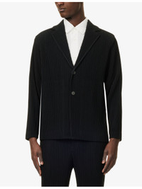 PRODUCT DETAILS - Homme Plisse Issey Miyake knitted blazer - 100% polyester; lining 100% polyester - Exposed button fastening at front - Slim fit, single-breasted, notch lapels, long sleeves, buttoned cuffs, two slip pockets at front, all-over pleated, single vent - Machine wash at 30°C - Size 2: length 27in / 69cm, chest 42in / 107cm - Model is 6ft 2in / 1.88m and wears size 2 - Lightweight, stretchy - This garment’s sizing is based on height and doesn’t conform to standard sizes. Please refer to the size guide for your desired length Ref: R04436396