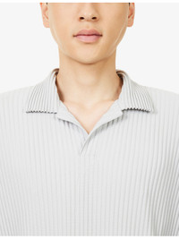 PRODUCT DETAILS - Homme Plisse Issey Miyake knitted polo top - 100% polyester - Collared, V-neck opening, short sleeve, all-over pleated texture - Machine wash at 30°C - Model is 6ft 2in/1.88m and wears a size 3 - Lightweight, slight stretch - This garment’s sizing is based on height and doesn’t conform to standard sizes. Please refer to the size guide for your desired length. Ref: R04500186
