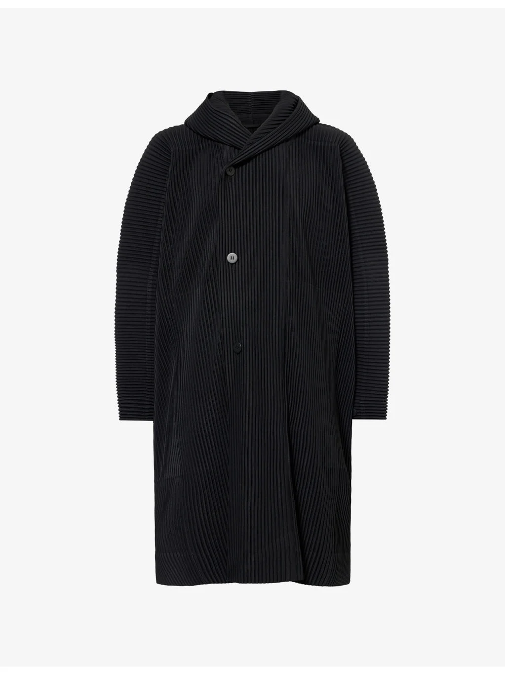 PRODUCT DETAILS - Homme Plisse Issey Miyake woven coat - 100% polyester - Button fastening - Relaxed fit, shawl collar, hood, long sleeves, side pockets, all-over pleated texture - Machine wash mild - True to size - Lightweight, non-stretch Ref: R04554111