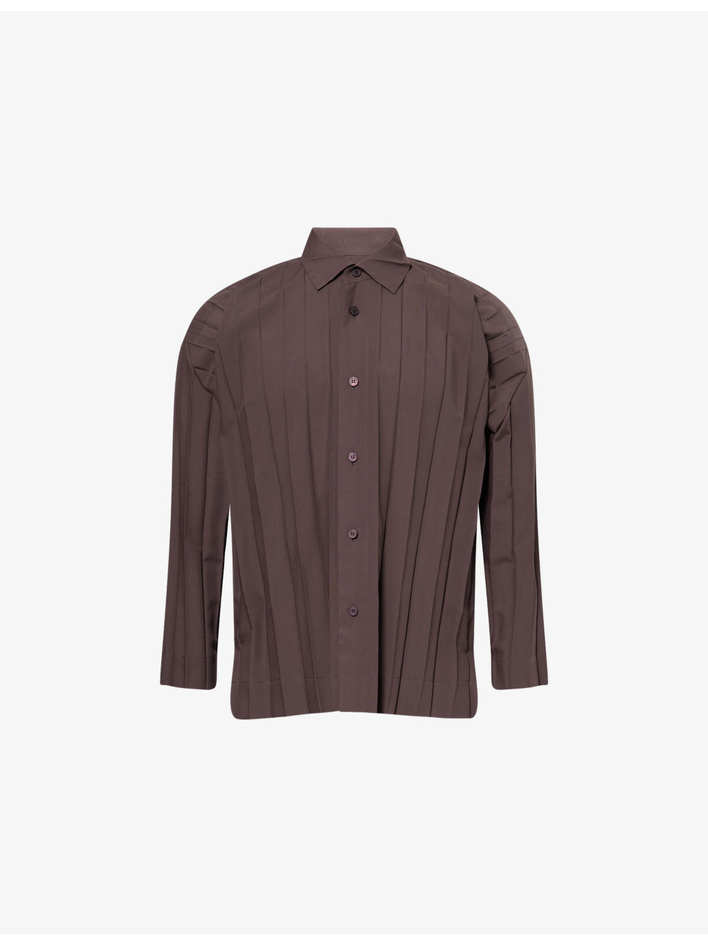 PRODUCT DETAILS - Homme Plisse Issey Miyake knitted skirt - 100% polyester - Exposed button fastening at front - Spread collar - Relaxed fit, collar, long sleeves, all-over pleated - Machine wash at 30°C - Model is 6ft 2in / 1.88m and wears size 2 - Lightweight, stretchy - This garment’s sizing is based on height and doesn’t conform to standard sizes. Please refer to the size guide for your desired length. Ref: R04500189