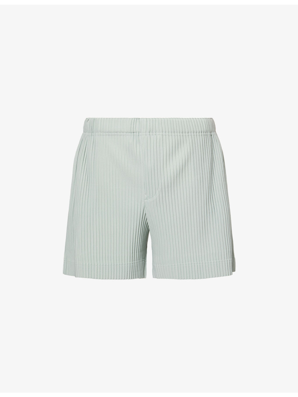 PRODUCT DETAILS - Homme Plisse Issey Miyake knitted shorts - 100% polyester - Regular fit, mid-rise, drawstring elasticated waistband, two slip pockets and concealed button fastening at front, all-over plisse texture - Machine wash at 30°C - One size: rise 12in / 32cm, inside leg 5in / 13cm, leg opening 24in / 61cm - Model is 6ft 2in / 1.88m and wears one size - Lightweight, stretchy - This garment’s sizing is based on height and doesn’t conform to standard sizes. Please refer to the size guide for your desired length Ref: R04500174