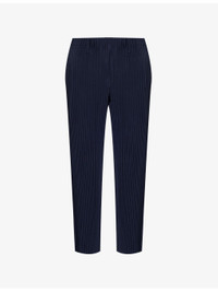 PRODUCT DETAILS - Homme Plisse Issey Miyake knitted trousers - 100% polyester - Pulls on - Regular fit, mid-rise, tapered leg, elasticated waistband, belt loops, concealed button fastening at front, side slip pockets, all-over pleats - Machine wash cold - Size 2: rise 12in / 31cm, inside leg 26in / 66cm, leg opening 16in / 41cm - Model is 6ft/1.83m and wears a size 2 - Lightweight, slight stretch Ref: R04436397