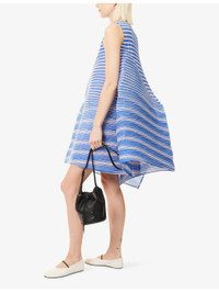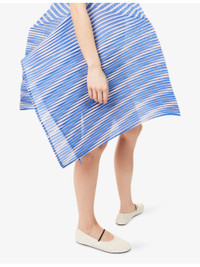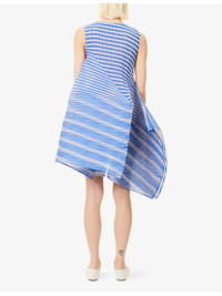 PRODUCT DETAILS - Issey Miyake knitted mini dress - 100% polyester - Regular fit, round neck, sleeveless, panelled stripe pattern, asymmetric, pleats texture - Dry clean - Made in Japan - Size 3: length 34in / 86cm - Model is 5ft 10in/1.78m and wears a size 3 - Lightweight, slight stretch - This garment’s sizing is based on height and doesn’t conform to standard sizes. Please refer to the size guide for your desired length. Ref: R04556788