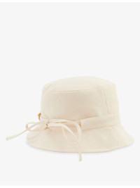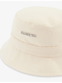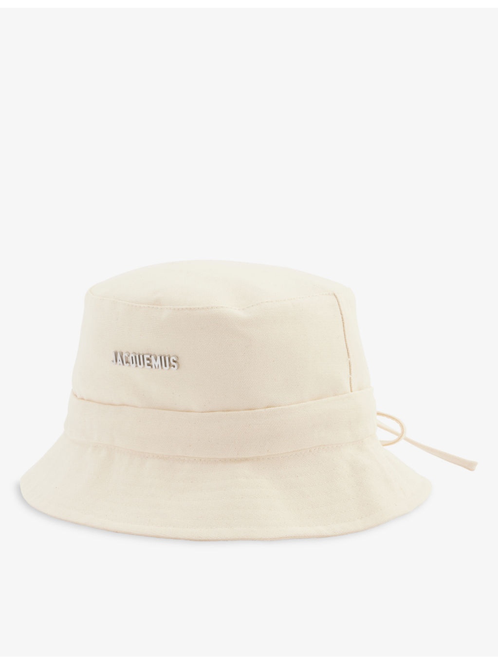 PRODUCT DETAILS - Jacquemus cotton bucket hat - 100% cotton - Pulls on - Tapered brim, brand metal plaque at front, self-tie drawstring at back, silver-toned hardware - Wipe with a clean, dry cloth - Midweight, non-stretch Ref: R03977664