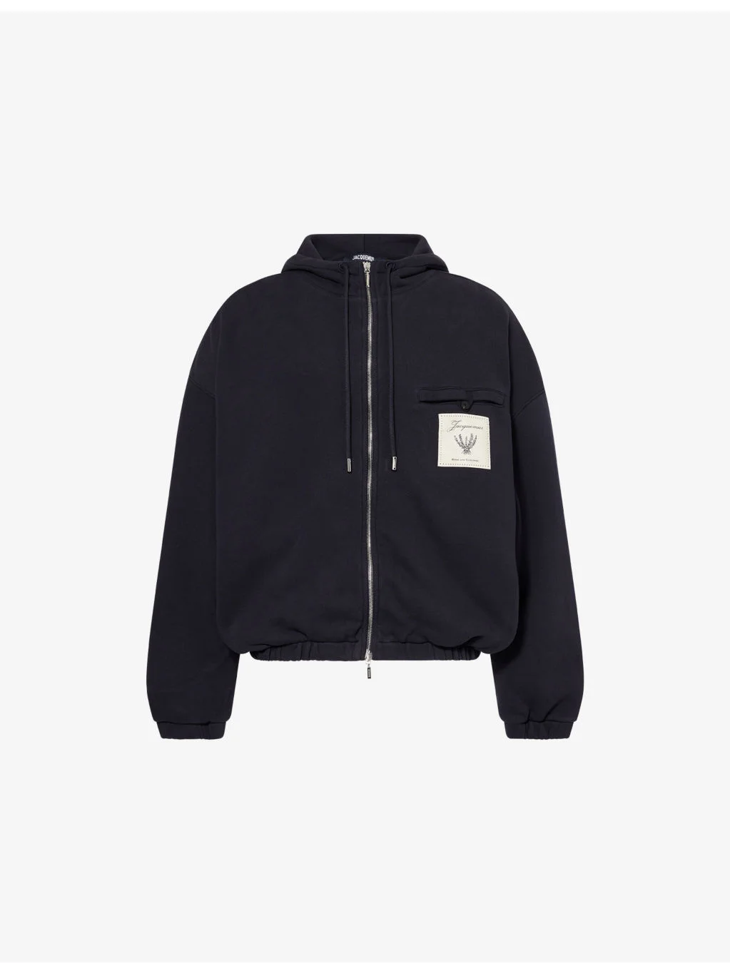 PRODUCT DETAILS - Jacquemus cotton-jersey hoodie - 100% cotton; contrast 60% acetate, 40% polyester; lining 100% cotton - Exposed zip fastening at front - Relaxed fit, high-neck, drawstring hood, dropped shoulders, long sleeves, buttoned pocket and two slip pockets at front, brand patch at front and back, all-over melange print, fully lined, elasticated trims - Machine wash at 30°C - Made in Portugal - Model is 6ft 2in/1.88m and wears a size medium - Heavyweight, stretchy Ref: R04568196