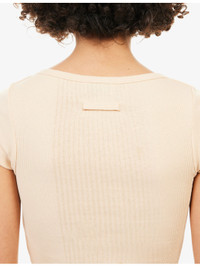 PRODUCT DETAILS - Jean Paul Gaultier cotton-knit T-shirt - 100% cotton - Slim fit, round-neck, short sleeves, brand patch at front, all-over ribbed - Machine wash at 30°C - Made in Bulgaria - True to size - Model is 5ft 10in/1.78m and wears a size small - Lightweight, stretchy Ref: R04571691