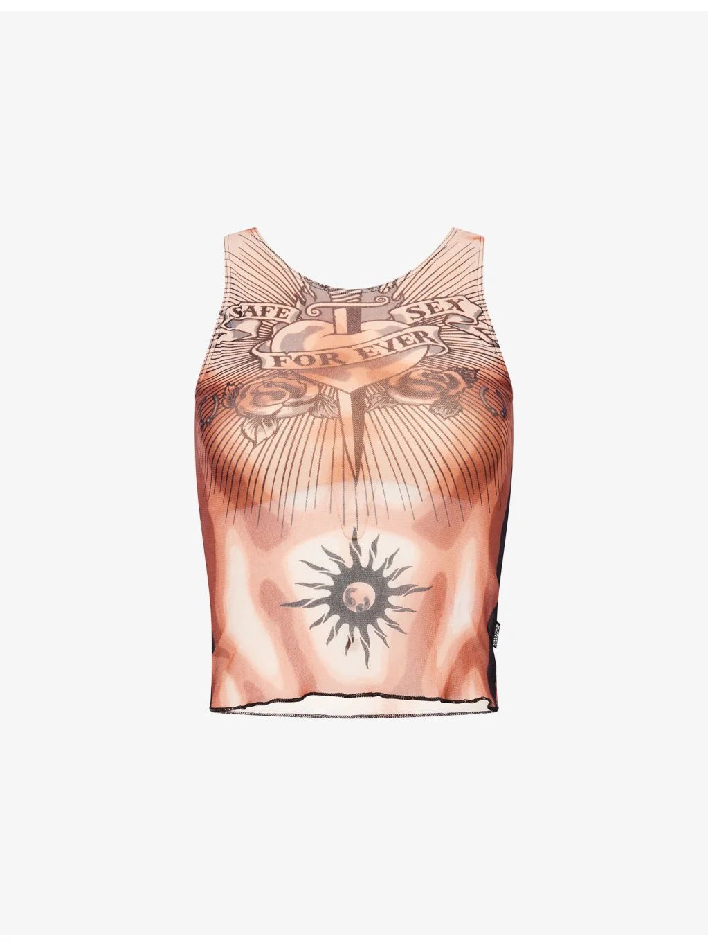 PRODUCT DETAILS - Jean Paul Gaultier mesh top - 100% polyamide - Regular fit, round neck, shoulder straps, all-over graphic pattern, bust lining, semi-sheer - Hand wash - Made in Italy - True to size - Model is 5ft 10in/1.78m and wears a size small - Lightweight, stretchy Ref: R04571696