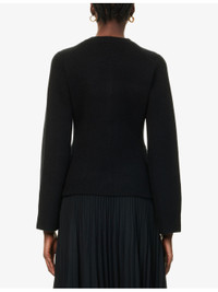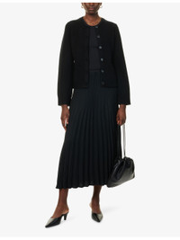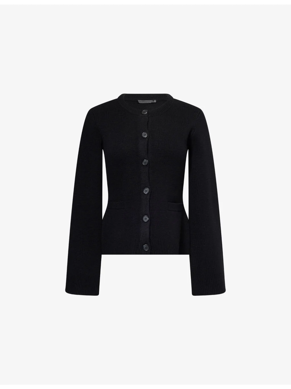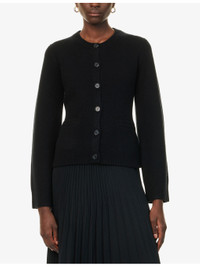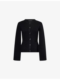 PRODUCT DETAILS - Jenni Kayne wool and cashmere cardigan - 73% wool, 27% cashmere - Exposed button fastening at front - Regular fit, round-neck, long sleeves, two welt pockets at front, cinched waist, ribbed trims - Dry clean - True to size - Size small: length 22in / 57cm - Model is 5ft 10in/1.78m and wears a size small - Midweight, stretchy Ref: R04529902