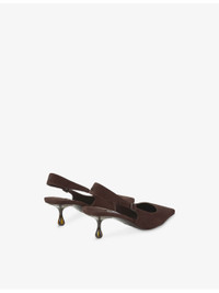 PRODUCT DETAILS - Jimmy Choo suede heeled courts - 100% leather - Adjustable buckle fastening - Pointed closed toe, slingback design, sculptural stiletto heel, branded buckle at side - Heel height 50mm / 2in - Specialist leather clean - Made in Italy - Upper: 100% leather - Lining: 100% leather - Sole: 100% leather Ref: R04472919