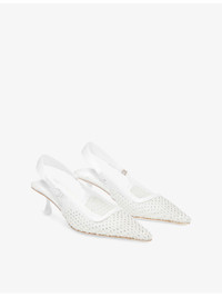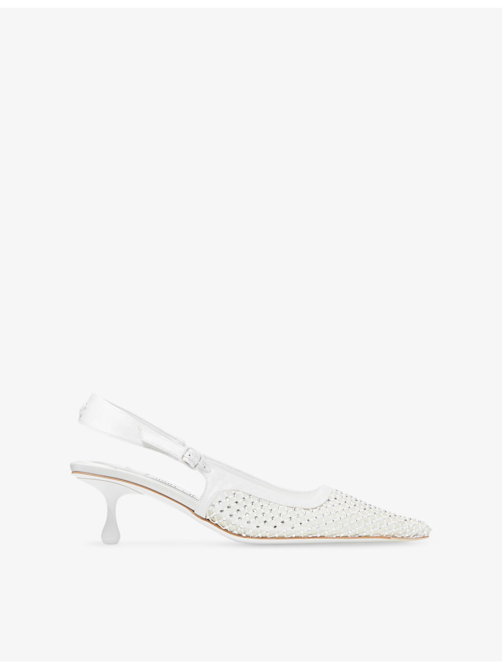 PRODUCT DETAILS - Jimmy Choo heeled satin pumps - 100% satin - Slips on - Pointed toe, crystal-embellished mesh upper, mid-heel, sling-back design - Heel height 50mm / 1.9 inches - Wipe with a clean, dry cloth - Made in Italy - Upper: 100% satin - Lining: 100% leather - Sole: 100% rubber Ref: R04401753