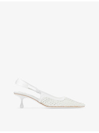 Amel 50 crystal-embellished mesh and satin slingback pumps Ivory