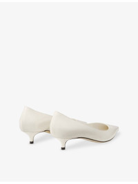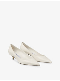 PRODUCT DETAILS - Jimmy Choo leather heeled courts - 100% leather - Pointed closed toe, branded footbed, cushion sole, high stiletto heel - Heel height 35in / 1.3in - Specialist leather clean - Made in Italy - Upper: 100% leather - Lining: 100% leather - Sole: 100% rubber Ref: R04472920