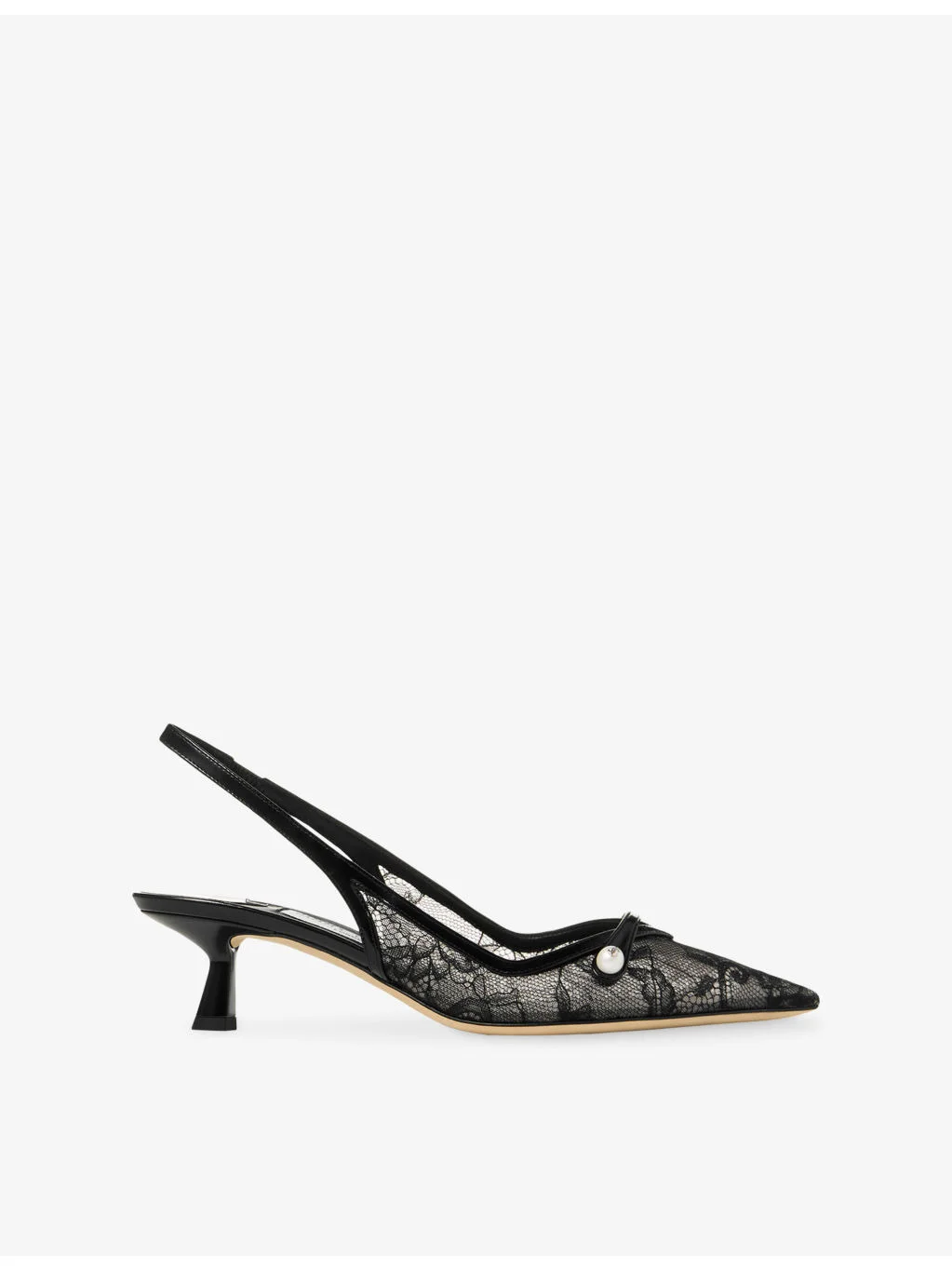 PRODUCT DETAILS - Jimmy Choo lace pumps - 100% lace - Pointed toe, floral lace pattern, slingback style, stiletto heel - Heel height 45mm / 1.7 inches - Specialist clean - Made in Italy - Upper: 100% lace - Lining: 100% textile - Sole: 100% leather Ref: R04549693