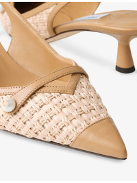 Amita 45 Cappuccino Leather and Raffia Slingback Pumps