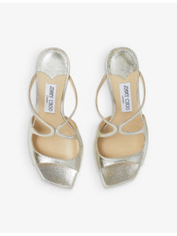 PRODUCT DETAILS - Jimmy Choo leather heeled sandals - 100% leather - Slips on - Open toe, square toe, stiletto heel, all-over glitter effect, crossover straps, contrast stitching, backless, branded insole - Heel height 2.9""""/ 75mm - Specialist leather clean - Made in Italy - Upper: 100% leather - Lining: 100% leather - Sole: 100% leather Ref: R04076764