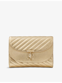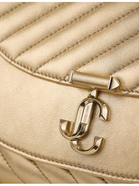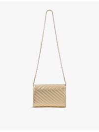 PRODUCT DETAILS - Jimmy Choo Metallic-Leather Clutch Bag - 80% lamb leather, 20% brass - Press-stud fastening - Soft curved silhouette, chain shoulder strap, flap front, metallic quilted leather, signature JC emblem, curved silhouette, split compartment, metallic leather - Length 21cm, height 15cm, width 4cm, shoulder strap drop 52cm - Specialist leather clean - Made in Italy Ref: R04472926