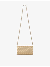 PRODUCT DETAILS - Jimmy Choo Metallic-Leather Wallet Chain - 75% lamb leather, 25% brass - Press-stud fastening - Soft curved silhouette, chain shoulder strap, flap front, metallic quilted leather, signature JC emblem, curved silhouette, internal compartment - Length 19cm, height 10cm, width 4cm, shoulder strap drop 52cm - Specialist leather clean - Made in Italy Ref: R04472928