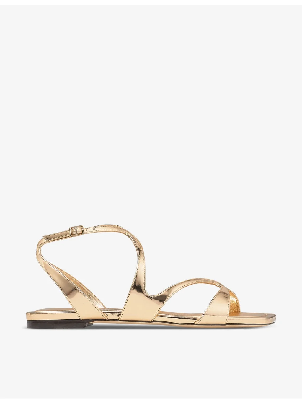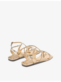 PRODUCT DETAILS - Jimmy Choo leather sandals - 100% leather - Slips on - Open toe, square toe, metallic finish, crossover straps, contrast stitching, backless, branded insole - Specialist leather clean - Made in Italy - Upper: 100% leather - Lining: 100% leather - Sole: 100% leather Ref: R04319757