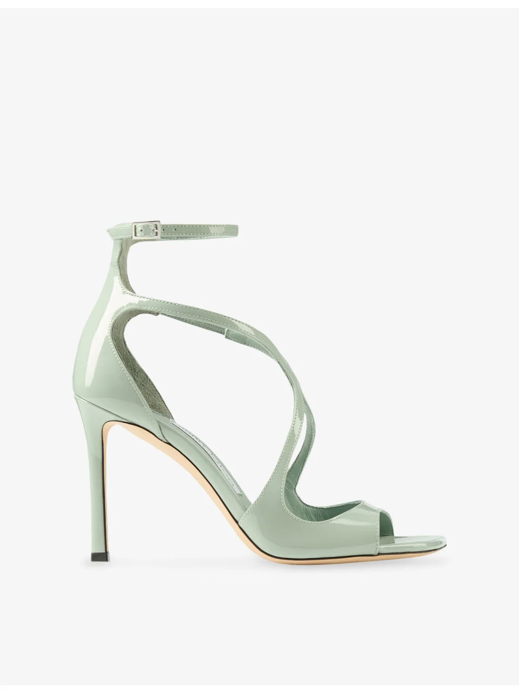 PRODUCT DETAILS - Jimmy Choo leather heeled sandals - 100% velvet - Ankle-buckle fastening - Square open toe, closed back, branded footbed, curved double strap design, slim heel - Heel height 95mm / 3.74in - Specialist leather clean - Made in Italy - Upper: 100% leather - Lining: 100% leather - Sole: 100% leather Ref: R04549715