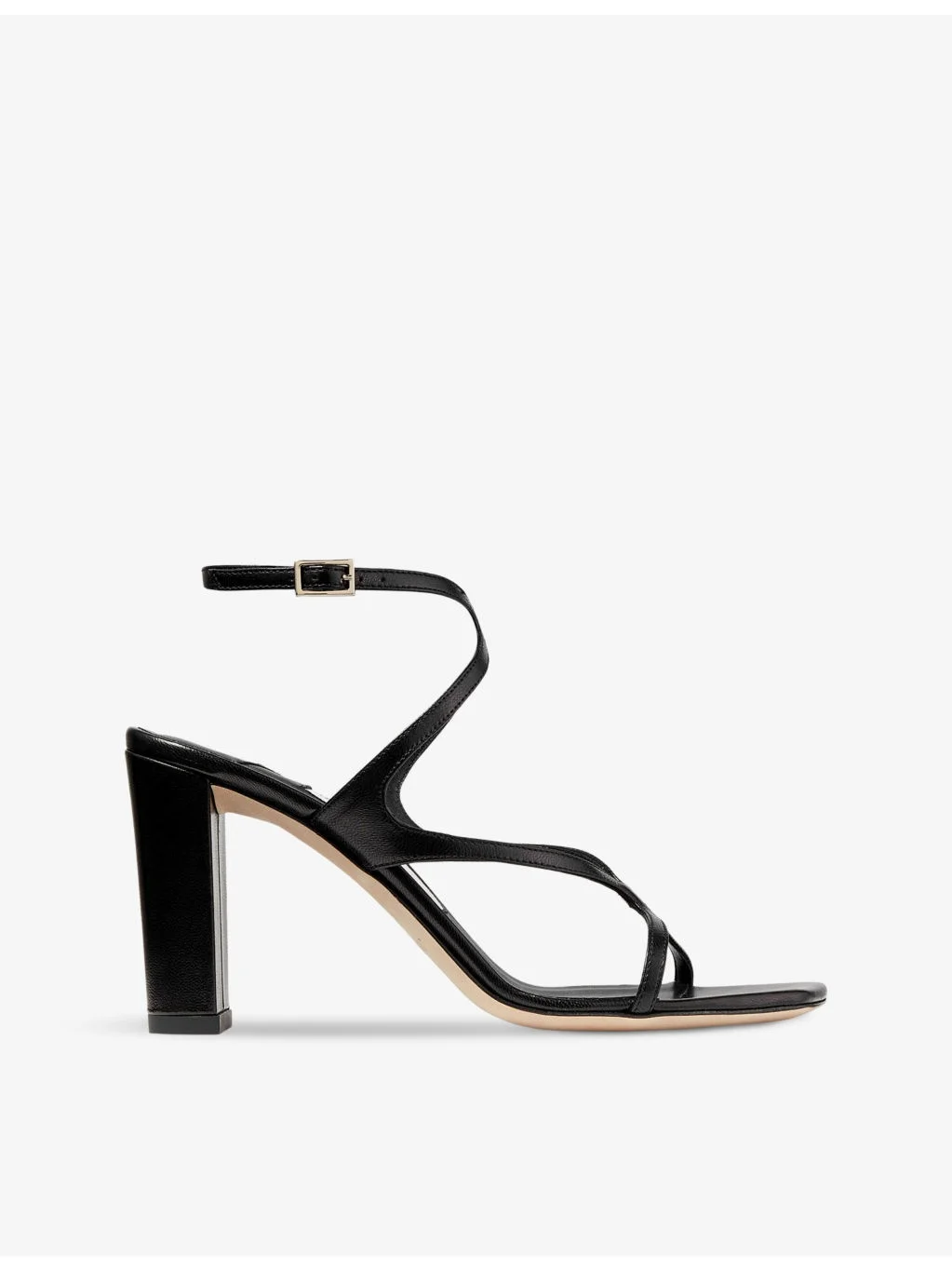 PRODUCT DETAILS - Jimmy Choo leather heeled sandals - 100% leather - Ankle-buckle fastening - Square toe, open toe, block heel, cross-over strap - Heel height 3.3'' / 85mm - Specialist leather clean - Upper: 100% leather - Lining: 100% leather - Sole: 100% leather Ref: R04311447
