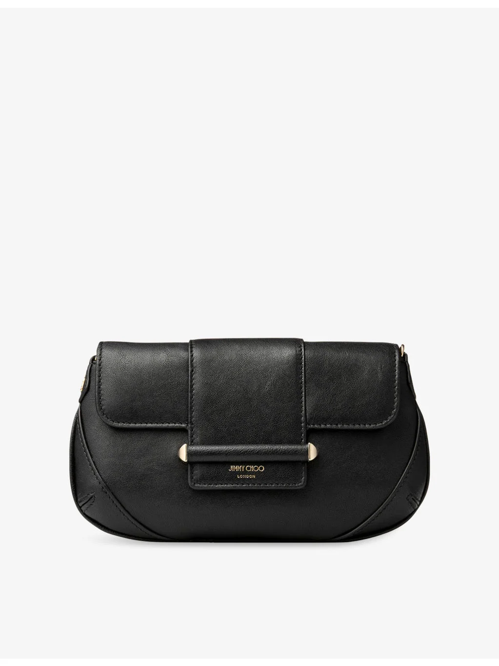 PRODUCT DETAILS - Jimmy Choo leather shoulder bag - 100% leather - Flap-over with magnetic closure - Curved shape, chain strap, logo print at front, bar hardware at front, one main compartment, polished hardware - Height 12cm, width 3cm, length 22cm - Specialist leather clean - Made in Italy Ref: R04549726