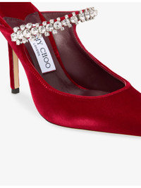 PRODUCT DETAILS - Jimmy Choo velvet mules - 100% velvet - Pointed toe, high stiletto heel, brushed velvet upper, crystal-embellished strap - Heel height 100mm - Wipe with a clean, dry cloth - Upper: 100% velvet - Lining: 100% leather - Sole: 100% leather Ref: R04549733