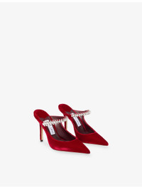 Bing 100 Ruby Red Velvet Mules with Crystal Embellishment