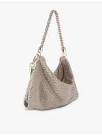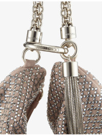 PRODUCT DETAILS - Jimmy Choo medium suede clutch bag - 47% goat leather, 30% crystal, 20% brass, 3% calf leather - Zip fastening - Chain-link handle, all-over crystal embellishment, slouchy silhouette, tassel trim, compartmentalised interior, logo-engraved hardware, silver-tone hardware - Height 20cm, width 24cm, depth 3.5cm, max strap drop 9cm - Specialist leather clean - Made in Italy - Presented with a Jimmy Choo dust bag Ref: R04122617
