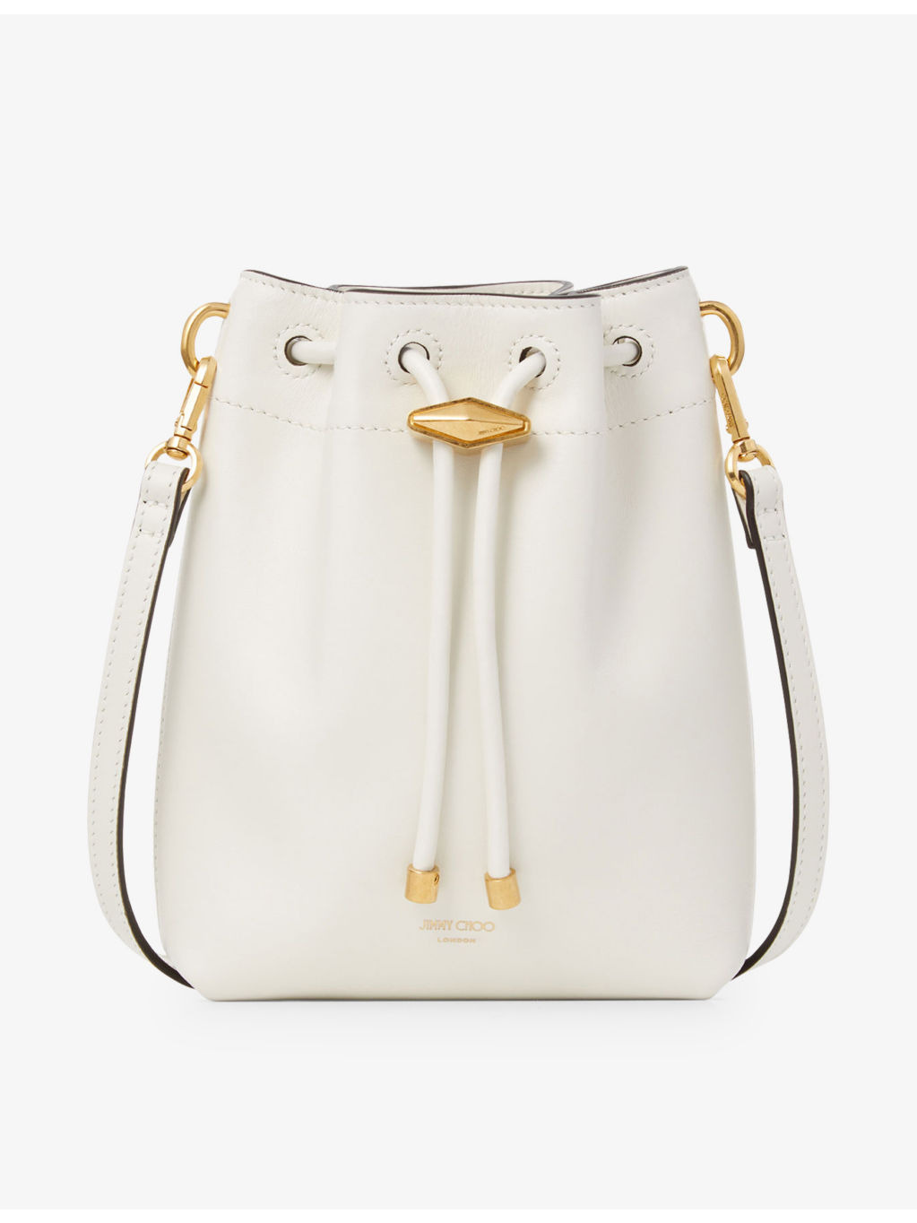 PRODUCT DETAILS - Jimmy Choo leather cross-body bag - 100% leather - Drawstring fastening - Adjustable shoulder strap, gold-toned hardware, logo at front, zipped interior pocket, fully lined - Height 14cm, width 19cm, depth 3cm - Specialist leather clean - Made in Italy Ref: R04319787