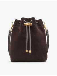 PRODUCT DETAILS - Jimmy Choo suede cross body bag - 100% suede - Drawstring closure - Detachable, adjustable cross body strap, cinched top, branded diamond-shaped hardware at drawstring, gold-toned hardware, one main interior compartment - Height 19cm, width 14cm, depth 3cm, strap drop length 50cm - Specialist leather clean - Made in Italy Ref: R04500278
