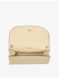 PRODUCT DETAILS - Jimmy Choo Leather Wallet Chain - 75% lamb leather, 25% brass - Press-stud fastening - Soft curved silhouette, chain shoulder strap, flap front, metallic quilted leather, signature JC emblem, curved silhouette, split compartment - Length 19cm, height 10cm, width 4cm, shoulder strap drop 52cm - Specialist leather clean - Made in Italy Ref: R04472927