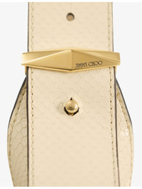 PRODUCT DETAILS - Jimmy Choo leather shoulder bag - 100% leather - Magnetic fastening - Adjustable shoulder strap, all-over snakeskin embossed, whipstitched trims, branded diamond-shaped hardware at side of strap, gold-toned hardware, one main interior compartment, self-lined interior - Height 15cm, width 20cm, length 11cm, handle drop length 32cm - Specialist leather clean - Made in Italy Ref: R04500281