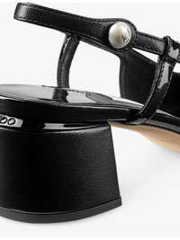 PRODUCT DETAILS - Jimmy Choo leather and patent-leather slingback courts - 100% leather - Closed square toe, elasticated slingback strap, branded faux-pearl embellishment at strap, patent toe cap and trims, debossed branding at back of heel, block heel - Heel height 1.7” - Specialist leather clean - Made in Italy - Upper: 100% leather - Lining: 100% leather - Sole: 100% leather Ref: R04500291